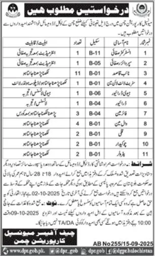 Municipal Corporation Chaman has announced multiple job openings for local domicile candidates of District Chaman. Interested applicants are invited to apply for various positions before the deadline 02 October 2025. The recruitment process will follow government rules and policies. Interviews will be held on 09 October 2025 at 10:00 AM.